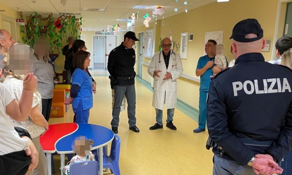 Agenti del Commissariato di Adrano al reparto di "Pediatria": sorpresa e curiosità dei piccoli degenti