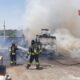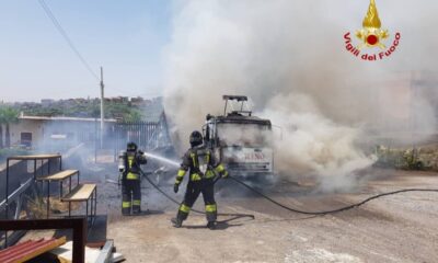 Il mezzo era all'interno di un'impresa di trasporti, in corso di accertamento le cause dell'incendio